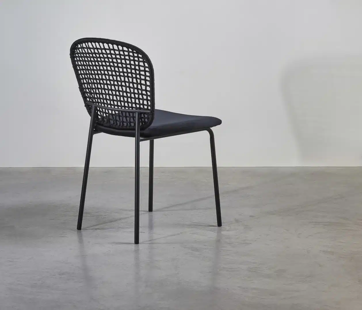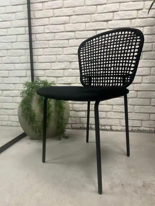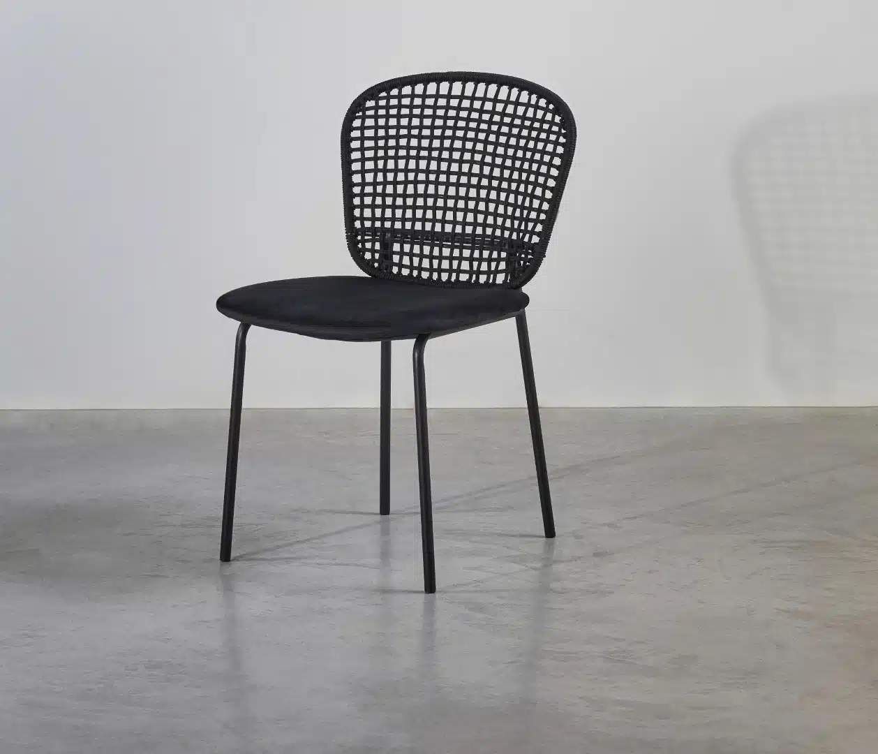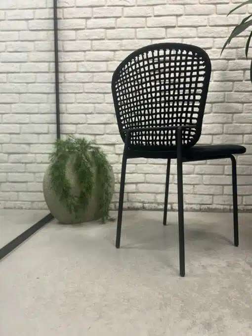 - משענת גב ייחודית: משענת הגב עשויה מחבל מיוחד המשולב עם מתכת, ויוצר מראה ייחודי ומרשים.
