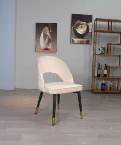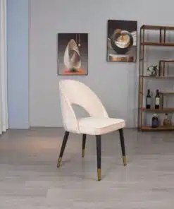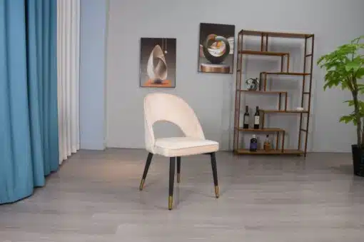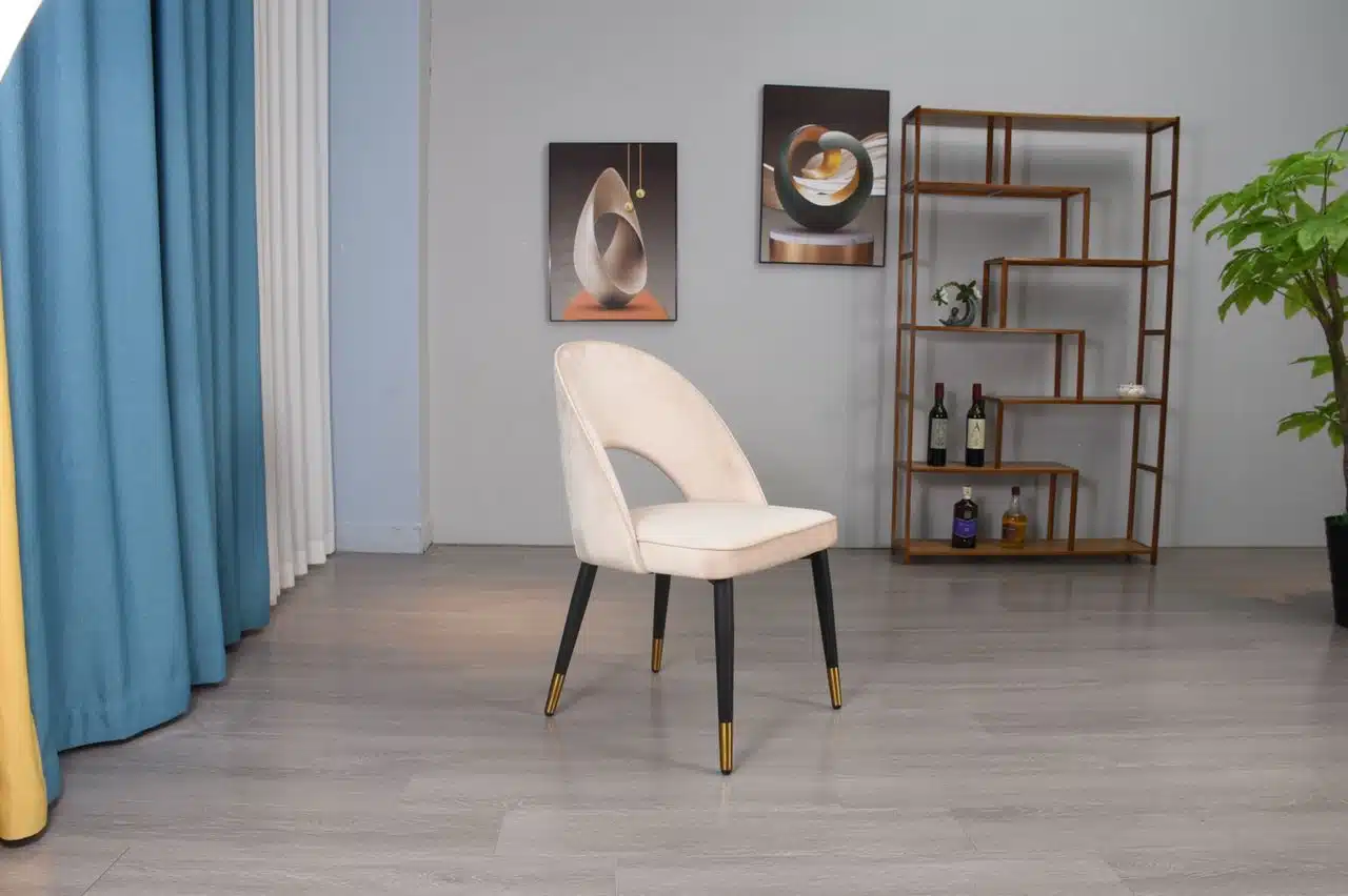 כסאות פינת אוכל מעוצבים בבד קטיפה קרם-בז'
