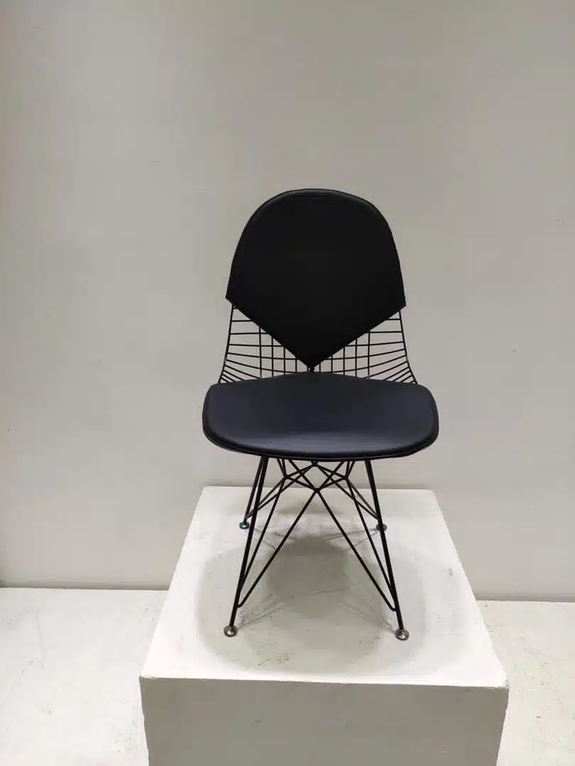כיסאות פינת אוכל מעוצבים מכורי התיל כיסאות פינת אוכל אלו משלבות שיק עיצובי ביותר ועדיין פונקציונליות יומיומית ונוחות ארגונומית עם כריות מושב וגב מדמוי עור איכותי.