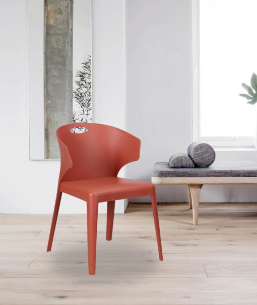 כסאות פלסטיק מעוצבים לפינת אוכל אדום-בורדו עשויים מפלסטיק איכותי ועמיד מתאימים לשימוש פנים וחוץ.