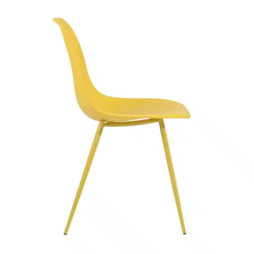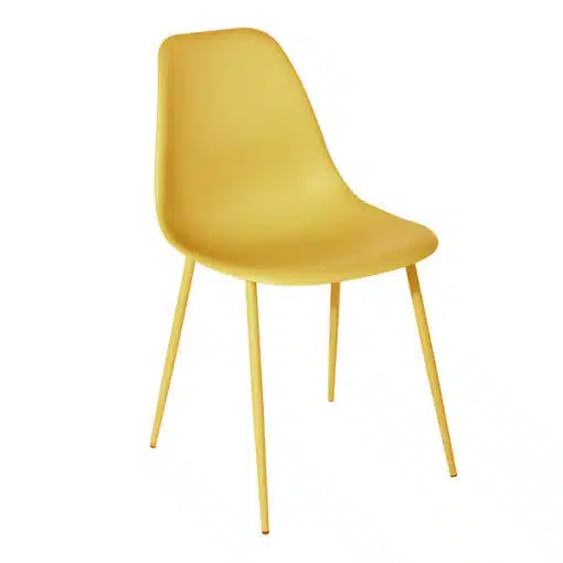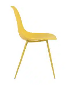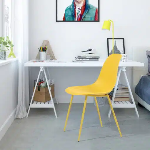 כסאות צהובים לפינת אוכל בעיצוב מודרני עשויים מפלסטיק חזק ועמיד קל לניקוי ותחזוקה. מסגרת הכיסאות עשויה ממתכת אל חלד בצביעה אלקטרוסטטית איכותית. הכיסאות מתאימים ככיסאות למטבח לפינת אוכל או ככיסאות המתנה למשרד.