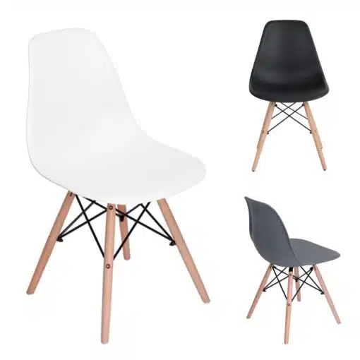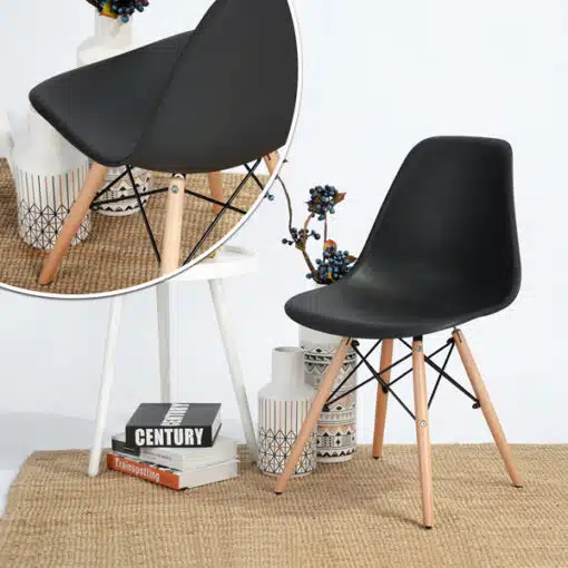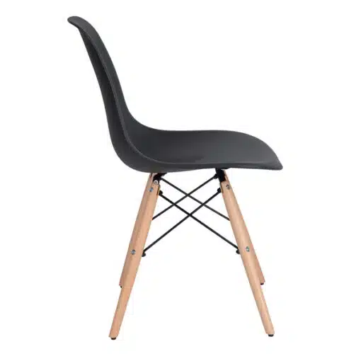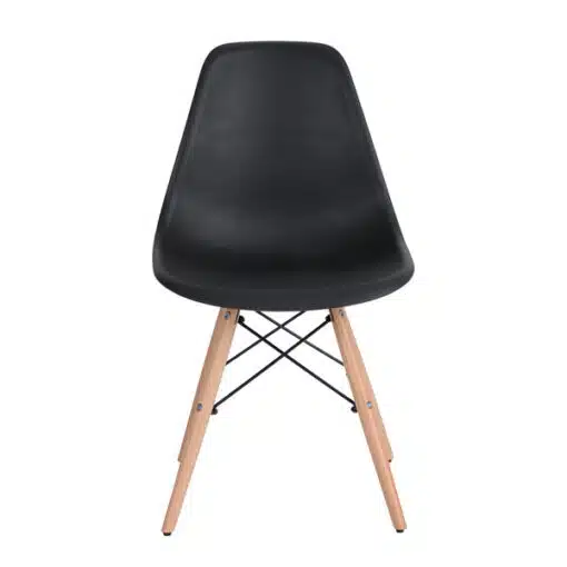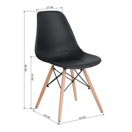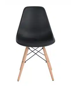 כסאות שחורים לפינת אוכל עשויים מפלסטיק ABS איכותי עמיד וקל לניקוי , רגלי הכסא והמסגרת עשויים ממתכת אל חלד ועץ בגוון אלון בהיר . הכסאות חזקים ויציבים מעוצבים בסגנון מודרני ומתאימים לפינת אוכל , למשרדים חדרי ישיבות.