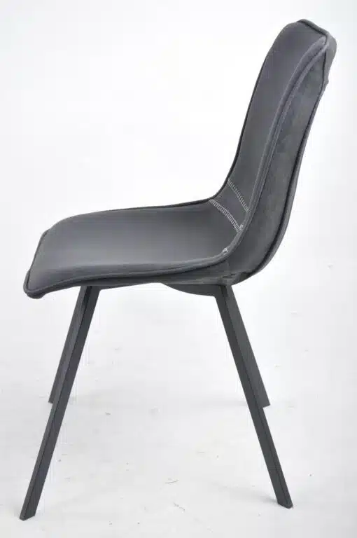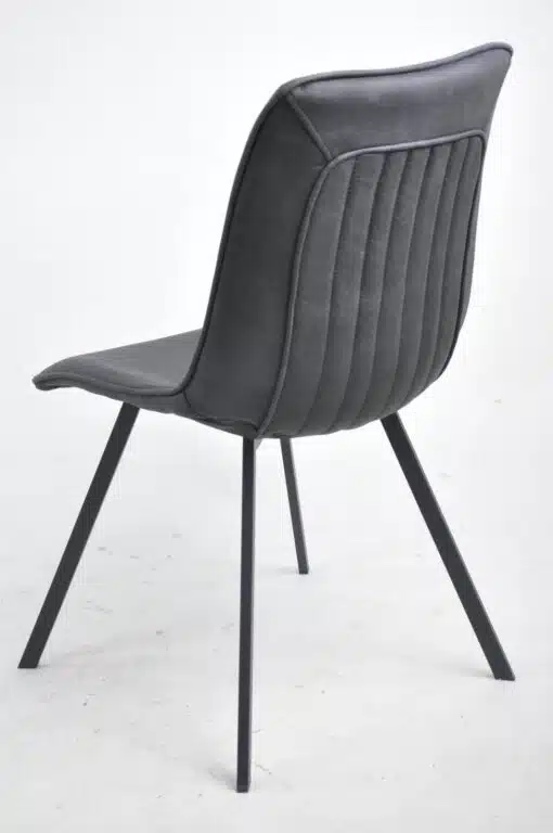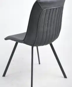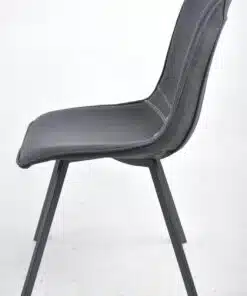 כסאות שחורים לפינת אוכל מרופדים בדמוי עור איכותי בגוון שחור גחל ובספוג איכותי בצפיפות גובה. מסגרת הכסאות עשויה ממתכת חזקה ויציבה אל חלד בצבע שחור בצביעה אלקטרוסטטית איכותית.