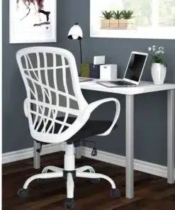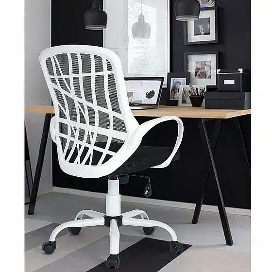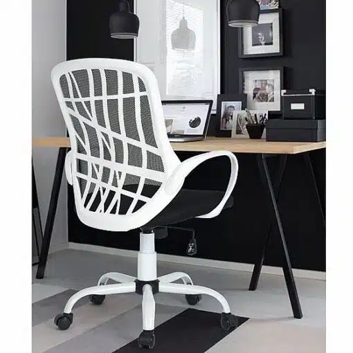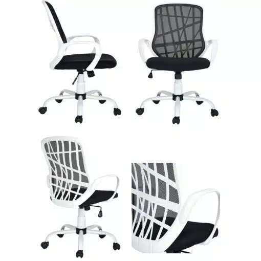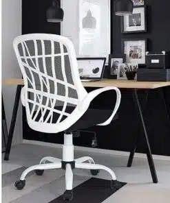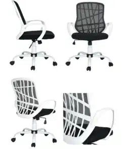 כיסא מחשב מעוצב שחור לבן מעניק זווית ישיבה ארגונומי ונוחה לעבודה לארוך שעות עם המחשב. הכיסא מרופד היטב בספוג מיוחד ובד נעים ומאוורר. מנגנון הכיסא להתאמת גובה המושב מופעל על ידי בוכנה פנאומטית איכותית המתכווננת 10 ס"מ להתאמה הגובה לנוחות מריבית וכן לשיכוך זעזועים .