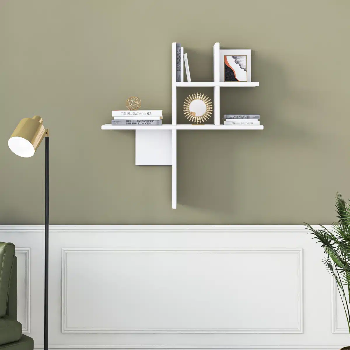 יחידת מדפי כוורת לתלייה על הקיר בצבע לבן , עשוי מעץ מתועש עם חיפוי מלמין יצוק