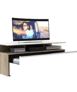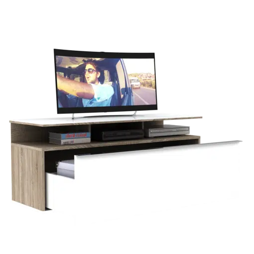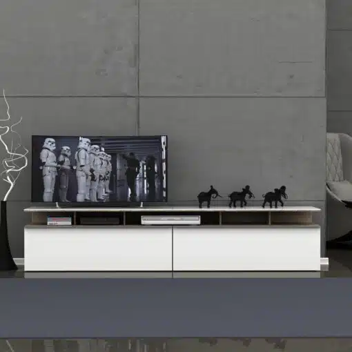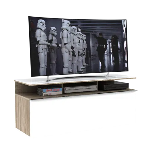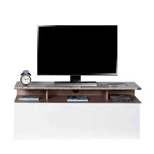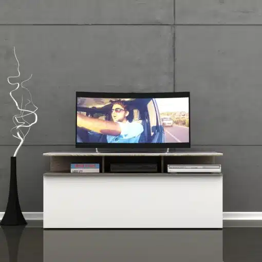 מזנון הטלוויזיה הלבן שלנו הוא הפתרון המושלם לאחסון מכשירי אלקטרוניקה, ספרים, חפצי נוי ועוד.