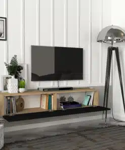 מזנון טלוויזיה צף בצבע אלון משולב עם שחור