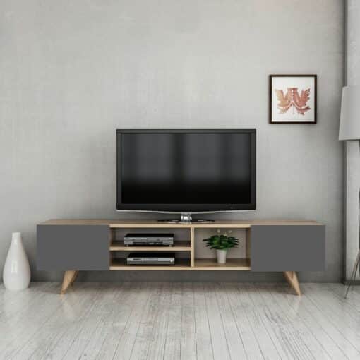 מזנון טלוויזיה 160 ס"מ בעיצוב מודרני בגוון עץ ואפור