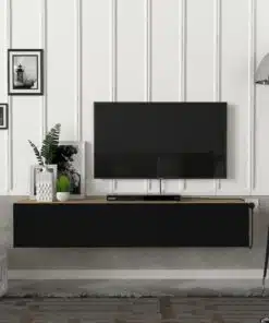 מזנון צף בצבע שחור משולב עם אלון עם קלאפת אחסון. המזנון עשוי משבבית דחוסה עם חיפוי מלמין יצוק בצבע שחור משולב עם אלון. המזנון מעוצב בסגנון מודרני וישתלב לצד עיצובים וסגנונות שונים.