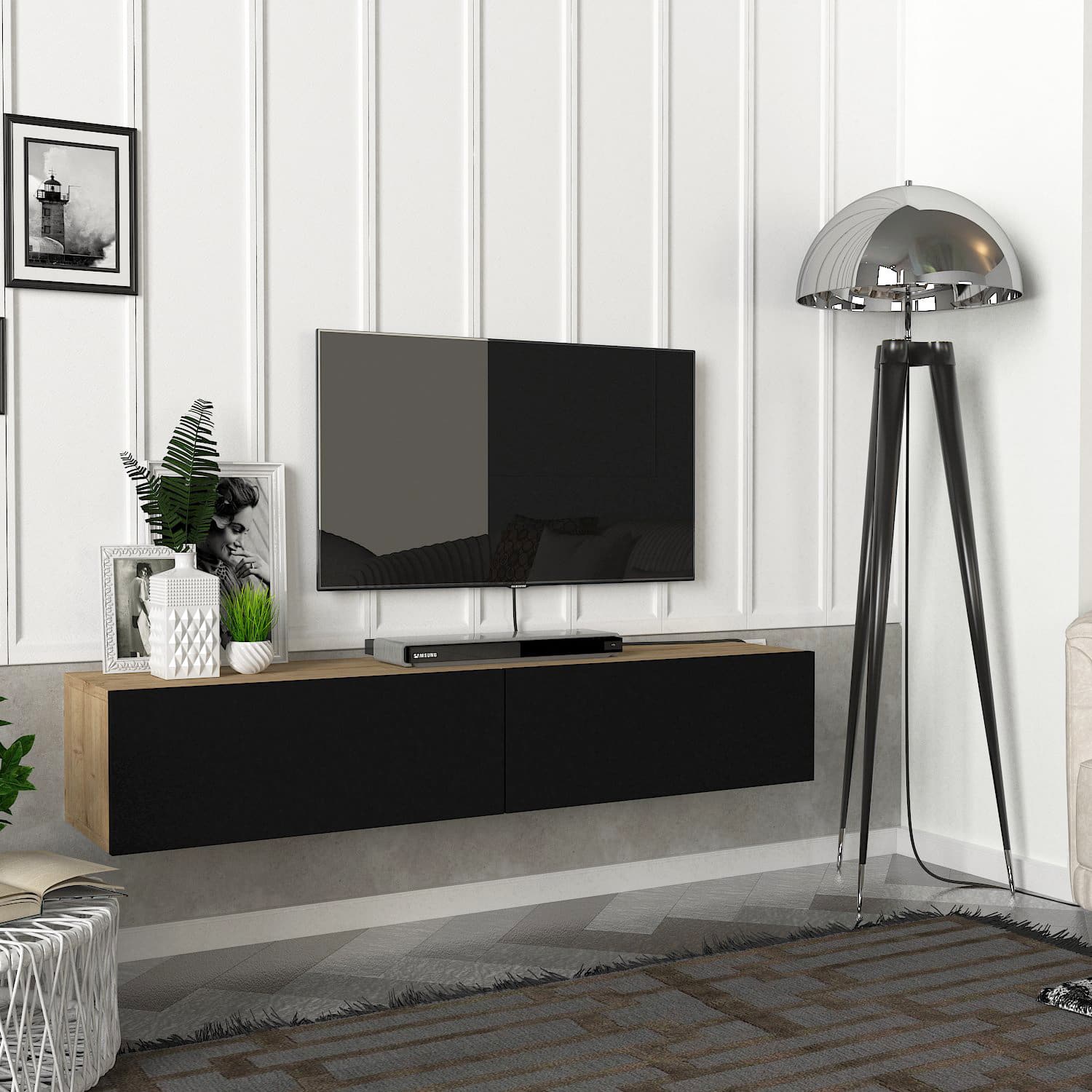 מזנון צף בצבע שחור משולב עם אלון עם קלאפת אחסון. המזנון עשוי משבבית דחוסה עם חיפוי מלמין יצוק בצבע שחור משולב עם אלון. המזנון מעוצב בסגנון מודרני וישתלב לצד עיצובים וסגנונות שונים.