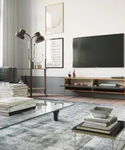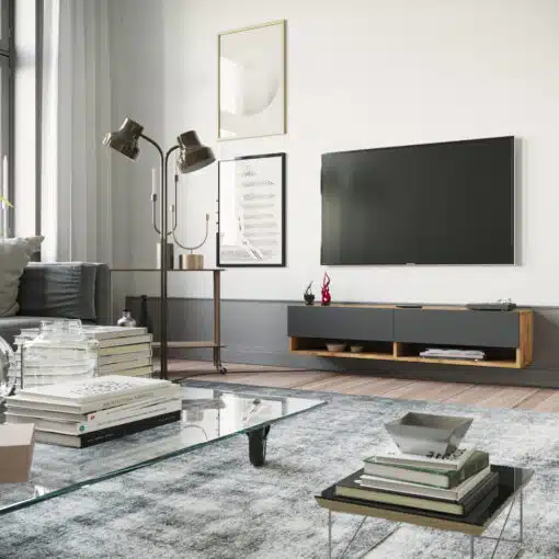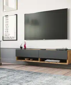 מזנון תלוי מעוצב עם תא אחסון כפול ומדף תחתון להנחת הממיר ומולטי מדיה. המזנו עשוי משבבית דחוסה עם חיפוי מלמין איכותי.