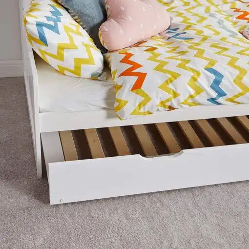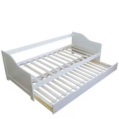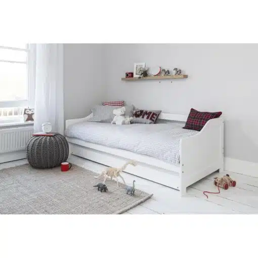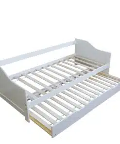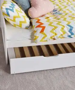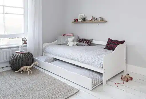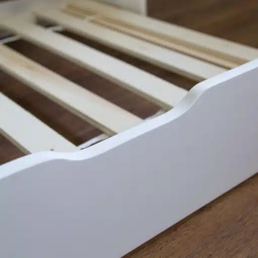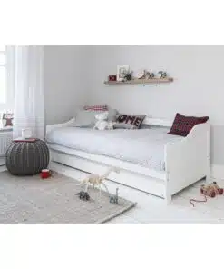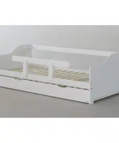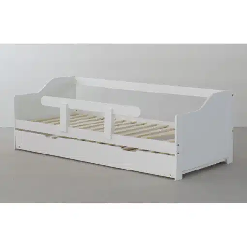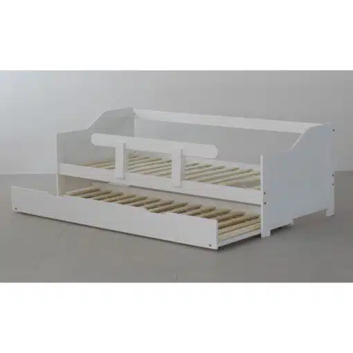 מיטת יחיד עם מיטת חבר בצבע לבן בעיצוב קלאסי. מיטת החבר נשלפת בקלות באמצעות גלגלים. המיטה מגיעה עם מעקה בטיחות אופציונלי להרכבה ושני מזרוני ספוג בצפיפות גובה מותאמים לילדים ונוער.