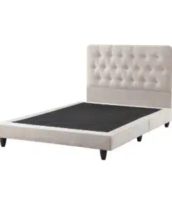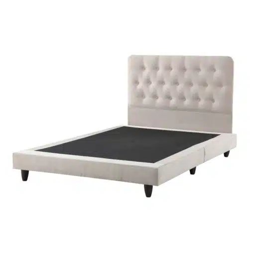 מיטת יחיד מרופדת בבד בז' – חום בהיר , בסיס המיטה עשוי ממתכת אל חלד , ראש המיטה עשוי מאם די אף בחיפוי ספוג איכותי בצפיפות גבוה המבטיח עמידות לאורך זמן.