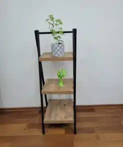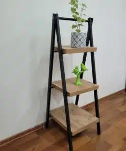סולם מדפים דקורטיבי מעץ ומתכת עם שלושה מדפים מתאים להנחת עציצים, חפצי נוי או ספרים. פריט זה משתלב נהדר ומתאים לסלון ולחדר השינה או לאמבטיה. המדפים עשויים מעץ מתועש עם חיפוי מלמין יצוק ומסגרת הסולם עשויה ממתכת אל חלד חזקה ויציבה.