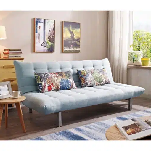 ספה מעוצבת תלת מושבית נפתחת למיטה בבד תכלת