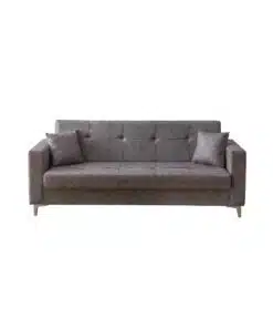 ספה נפתחת תלת מושבית מרופדת היטב בבד אפור איכותי עמיד וקל לניקוי וספוג איכותי בצפיפות גובה ודרגות קושי שונות להבטיח נוחות מרבית בשני המצבים. הספג מגיעה עם שני כריות נוי מתנה. לספה יש ארגז מצעים גדול לאחסון . הספה נפתחת בקלות ובמהירות למיטה , מסגרת הספה עשויה משבבית דחוסה ועץ מלא.