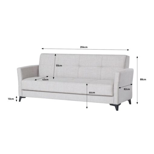 ספה תלת מושבית נפתחת למיטה עם ארגז מצעים גדול ונוח לאחסון . הספה מעוצבת בסגנון קלאסי ותשלב היטב לצד רהיטים וסגנונות שונים. הספה מרופדת היטב בבד איכותי עמיד ונעים למגע , ספוג איכותי בצפיפות גבוה יבטיח לכם נוחות במנח ישיבה ושינה. מסגרת הספה עשוי מאם די אף בתו תקן אירופאי.