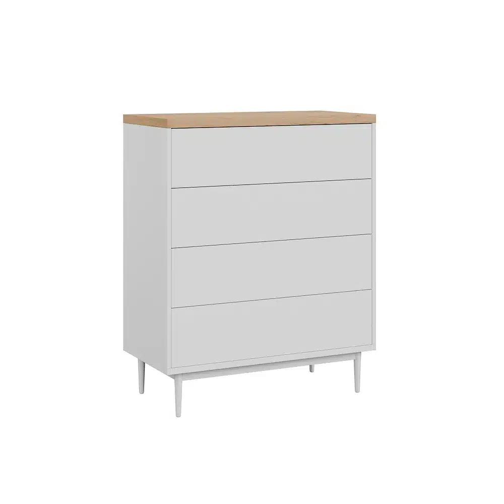 קומודה עם 4 מגירות במסילות טלסקופיות לחדר שינה מודרני ומאורגן