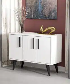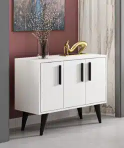 קונסולה לבית עם ארונית אחסון בצבע לבן משולב עם שחור