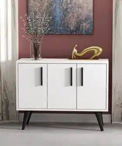 קונסולה לבית עם ארונית אחסון בצבע לבן משולב עם שחור