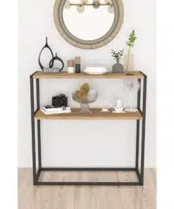 קונסולה צרה לכניסה לבית עם מדף אחסון . עשויה מאם די אף עם חיפוי מלמין יצוק, המסגרת עשויה מתכת אל חלד בגון שחור.
