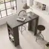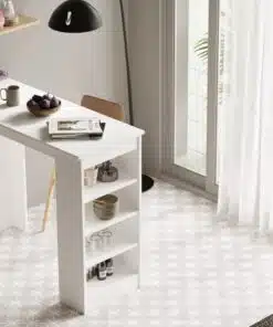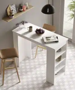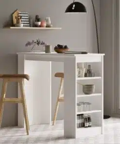 שולחן בר למטבח מכיל 4 מדפים לאחסון . השולחן עשוי משבבית דחוסה עם חיפוי מלמין יצוק.