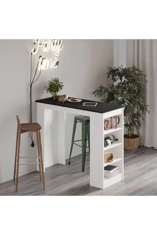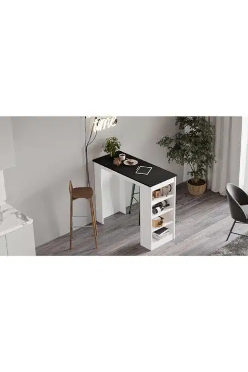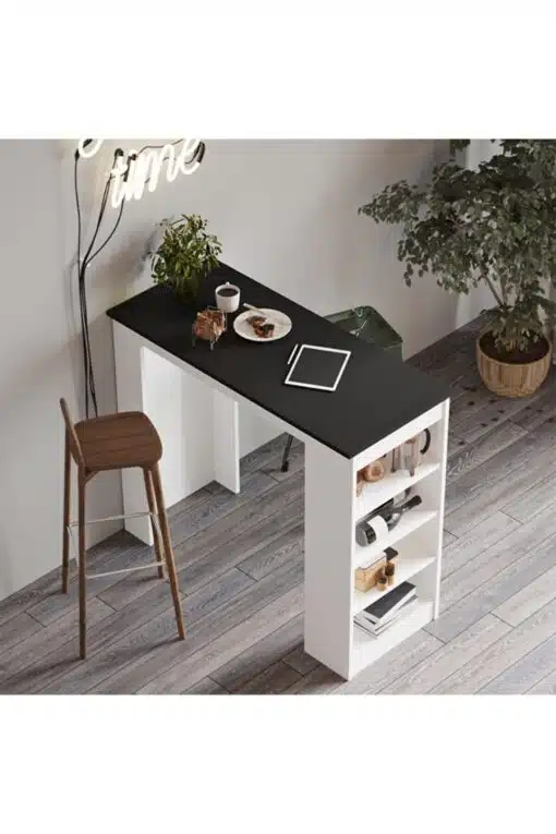 שולחן בר מלבני למטבח שחור משולב עם לבן