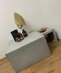 שולחן דמוי בטון לסלון עשוי מפיברגלאס ומתאים לשימוש פנים וחוץ . השולחן מעוצב בסגנון נקי וקווים ישרים.