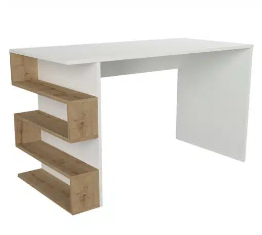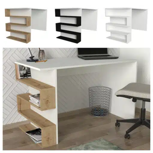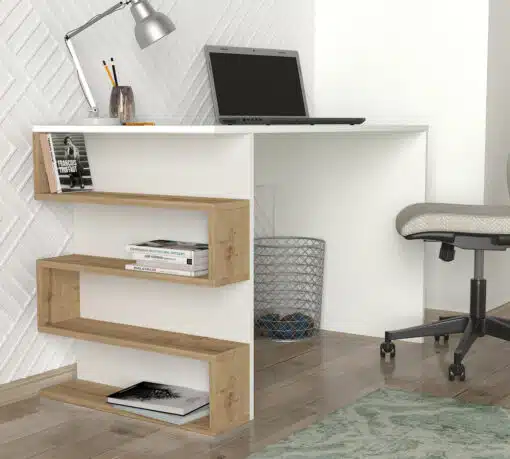 - ספריה משולבת: בצד השולחן תמצאו ספרייה מרווחת לאחסון ספרים, מסמכים או פריטים דקורטיביים.
