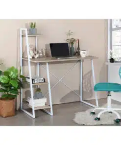 פינת עבודה חכמה: שולחן מחשב מעוצב בצבע אלון עם מדפים