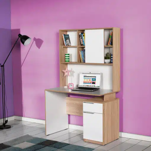 שולחן מחשב משולב עם ספריה ומגירות – דגם HM229: סביבת עבודה מושלמת ומאורגנת