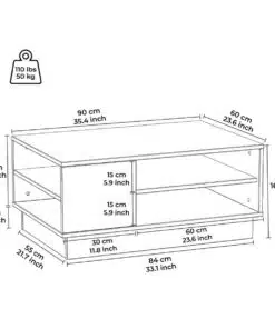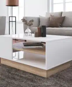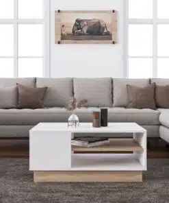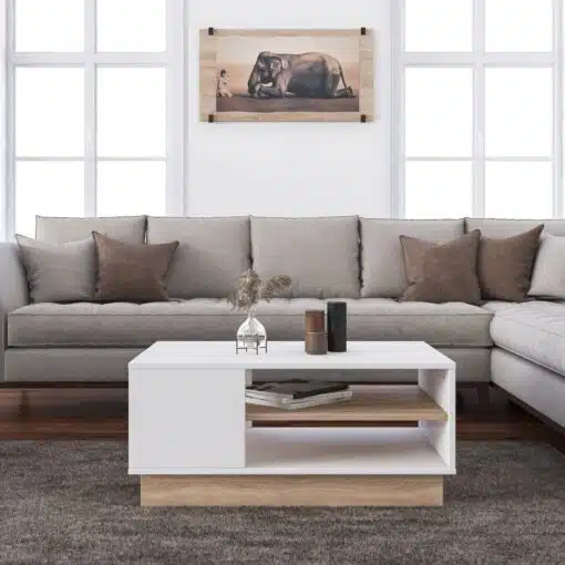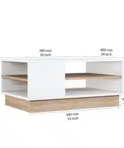 שולחן סלון מלבני מעוצב בסגנון קלאסי , משלוב עם צבע לבן וגוון עץ . השולחן עשוי מעץ מתועש עם חיפוי מלמין יצוק.