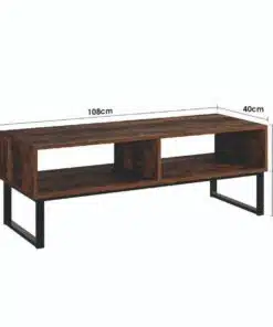 שולחן סלון מלבני משולב עץ ומתכת עם תאי אחסון גדולים ונוחים לאחסון . יכול לשמש גם כמזנון טלוויזיה . השולחן עשי מאם די אף איכותי עמיד וקל לניקוי , הרגליים ובסיס השולחן עשוי ממכת אל חלד חזקה ויציבה בצבע שחור.