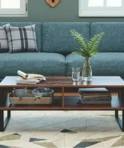 שולחן סלון מלבני משולב עץ ומתכת עם תאי אחסון גדולים ונוחים לאחסון . יכול לשמש גם כמזנון טלוויזיה . השולחן עשי מאם די אף איכותי עמיד וקל לניקוי , הרגליים ובסיס השולחן עשוי ממכת אל חלד חזקה ויציבה בצבע שחור.