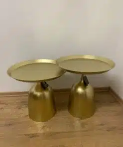 שולחנות לסלון בעיצוב אוריינטלי עשויים ממתכת אל חלד בצביעה אלקטרוסטטית בצבע זהב.