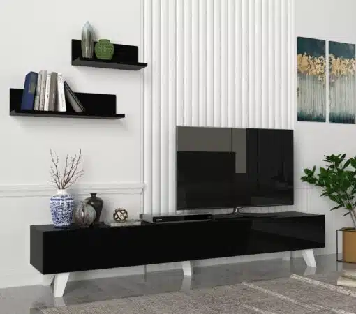 שידה לטלוויזיה בצבע שחור בעיצוב יוקרתי מודרני