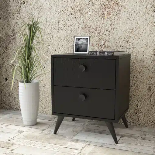 שידת לילה שחורה עם 2 מגירות – דגם HM010813: קלאסיקה נצחית עם פונקציונליות מרבית