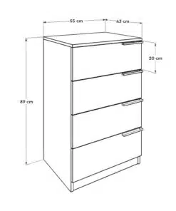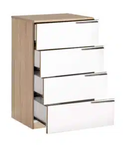 שידת מגירות משולבת עם לבן וגוון עץ הכולל 4 מגירות לאחסון רב תכליתי.  שידה זו מתאימה לחדר השינה, כשידת כניסה לבית , מגירת אחסון למשרד א לחדר ילדים.