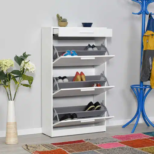 שידת נעליים מעוצבת עם 3 תאים אחסון השידה משמשת לאחסון הנעליים בצורה מסודרת ונוחה.