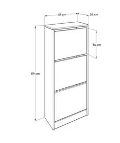 - מידות מדויקות: גובה: כ- 119 ס"מ, רוחב: כ- 51 ס"מ, עומק: כ- 26 ס"מ, גובה תאי אחסון: כ- 34 ס"מ.