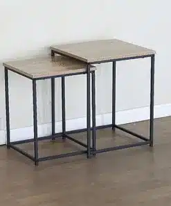 זוג שולחנות קפה לסלון הוא סט רהיטי ייחודי המשלב עץ בגוון אלון עם מתכת מושחרת ושיש שחור. העיצוב המודרני מוסיף נופך אלגנטי ופונקציונלי לכל סלון.