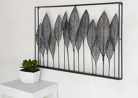 תקציר מוצר – קישוט קיר מתכת בדגם עלי ברוש פנורמה