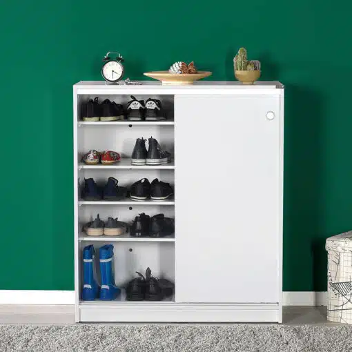 ארון הזזה 2 דלתות נמוך עם מדפים ושטח אחסון נגיש נוח לאחסון רק תכליתי , שימושי כארון שירות שירות לחדר שינה או כארון משרדי. הארון עשוי משבבית דחוסה בחיפוי מלמין בתקן אירופאי מכילה 4 מדפים רובם ניתן לכוון לגובה הרצוי.