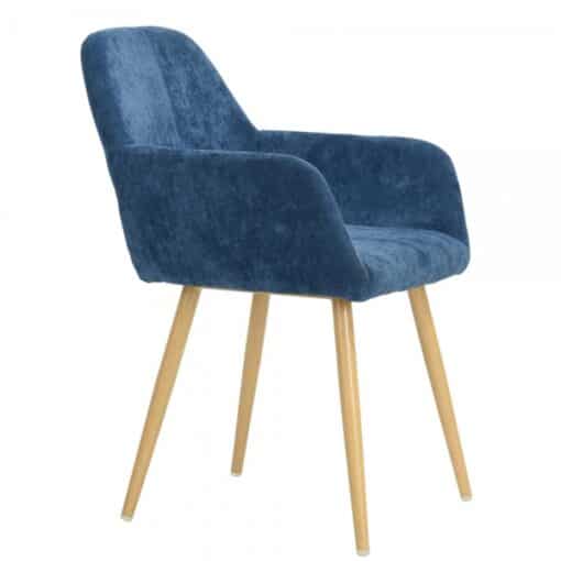 כסא כחול מעוצב למשרד או לבית , הכסא מרופד היטב בספוג איכותי ועמיד , בד דוחה כתמים וקל לניקוי , מסגרת הכסאות עשויה ממתכת אל חלד חזקה ויציבה בגימור עץ.