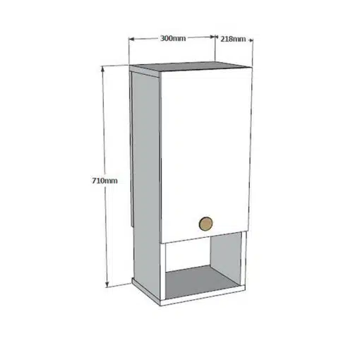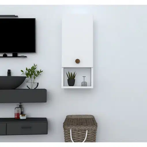 ארונית תלויה לקיר מתאימה לחדר האמבטיה , לסלון או לחדר השינה . לארונית מדף פתוח אחד ודלת עם שני מדפים נוספים. הארונית עשויה משבבית דחוסה עם חיפוי מלמין איכותי עמיד וקל לניקוי.
