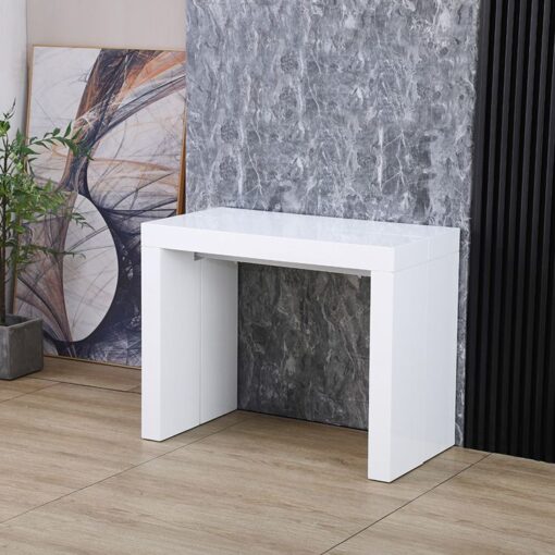 קונסולה נפתחת לפינת אוכל בצבע לבן מבריק