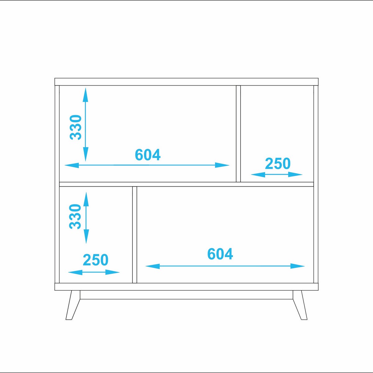 - תא תחתון ימני (604×330 מ"מ) – מרווח לתיקיות, אלבומים או פריטים גדולים יותר