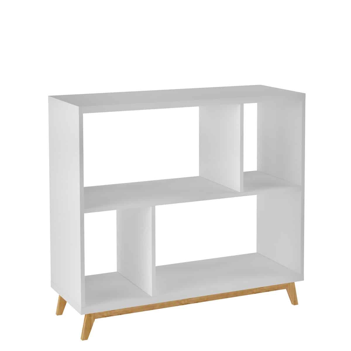 כוורת כוננית מעוצבת לסלון – פתרון אחסון אלגנטי עם רגליים מעץ