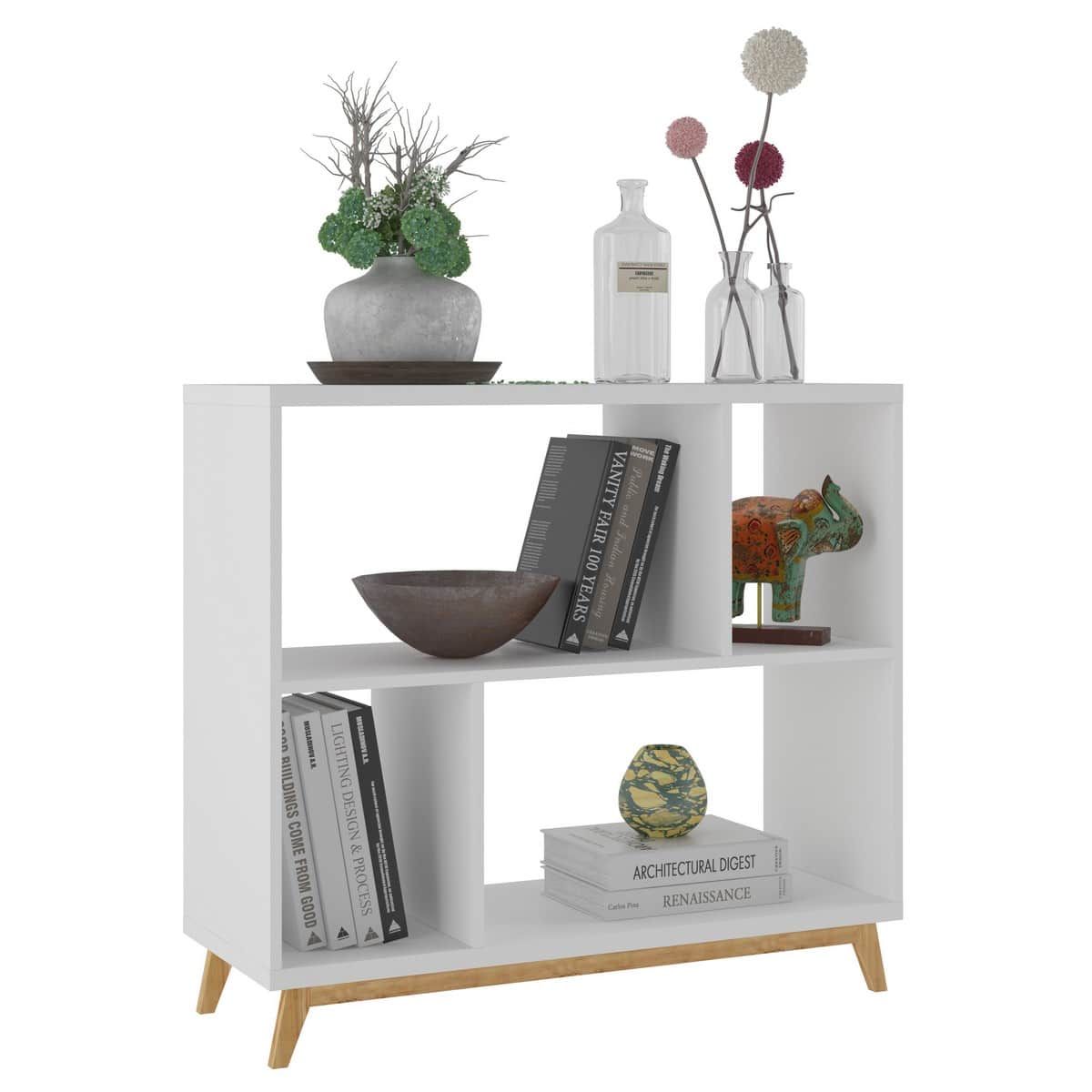עיצוב מודרני וייחודי: הכוננית משלבת מבנה MDF איכותי בגימור לבן קלאסי עם רגליים מעץ מלא המעניקות מגע טבעי וחם. העיצוב הנקי והמינימליסטי הופך את הכוורת לאלמנט עיצובי מרכזי שמשדרג כל חלל סלון.