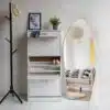 פתרון אחסון חכם חמשת המדפים מאפשרים ארגון מגוון – מספרים בגדלים שונים ועד לחפצי נוי ורכיבי דקורציה. המדפים מיוצבים בחוזקה ומתאימים לנשיאת משקל, מה שהופך את הארון לפתרון אחסון מעשי ואמין.